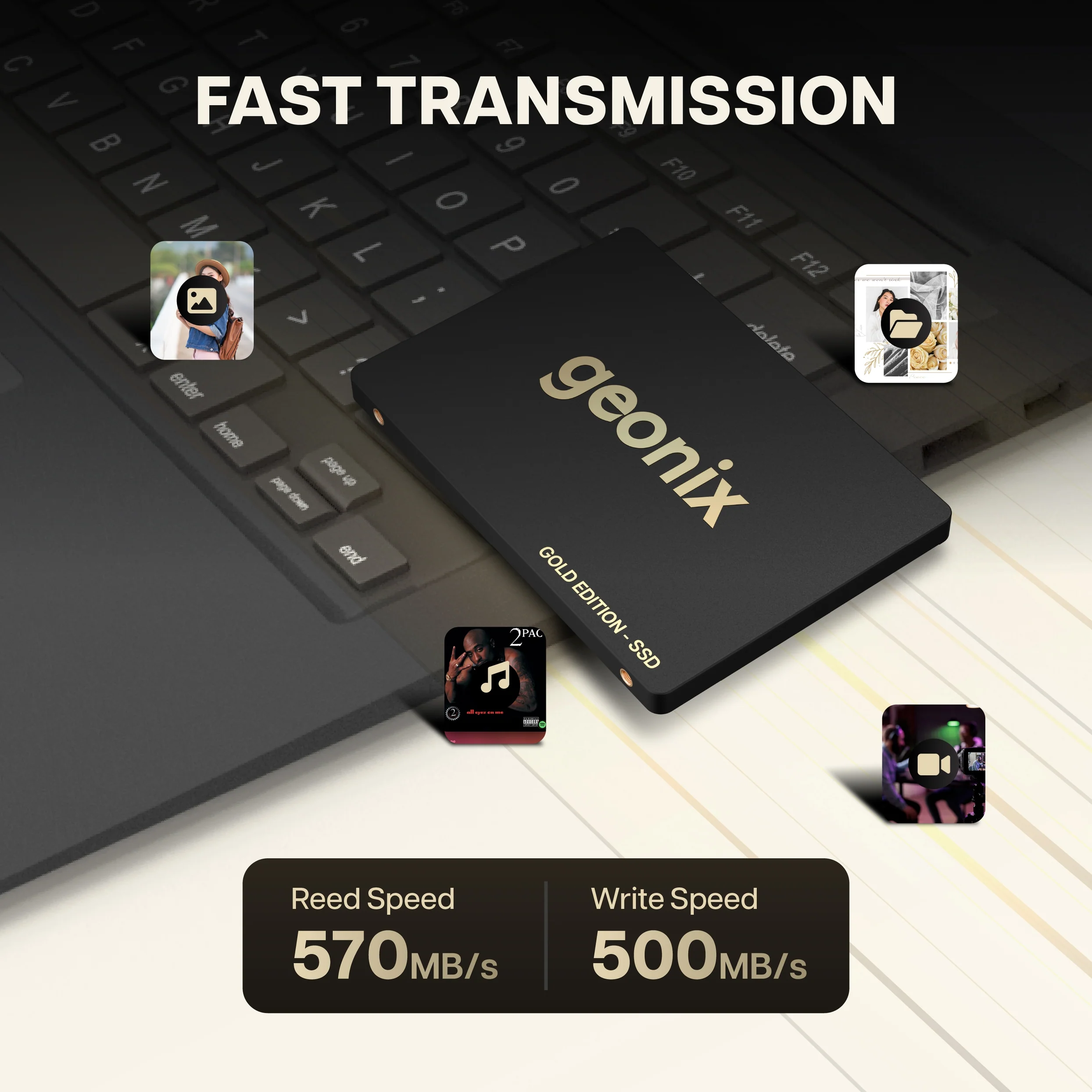 Experience ultra-fast system responsiveness with the Geonix Gold Edition SSD. Powered by SATA 3.0 (6Gb/s) interface and a high-performance Quad Channel Controller, this SSD delivers read speeds up to 560MB/s and write speeds up to 500MB/s ensuring quicker boot times, rapid file transfers and smooth application loading, making it ideal for both laptops and desktop PCs. With support for Windows XP / Vista / 7 / 8 / 10 / 10 Pro, Linux and Mac OS X, this SSD offers wide compatibility and reliable performance across platforms. Built to deliver best-in-class performance in its segment, it comes backed with a solid 5 year manufacturing warranty ensuring peace of mind and long-term durability. Fast. Efficient. Reliable. The perfect upgrade for enhanced computing performance.